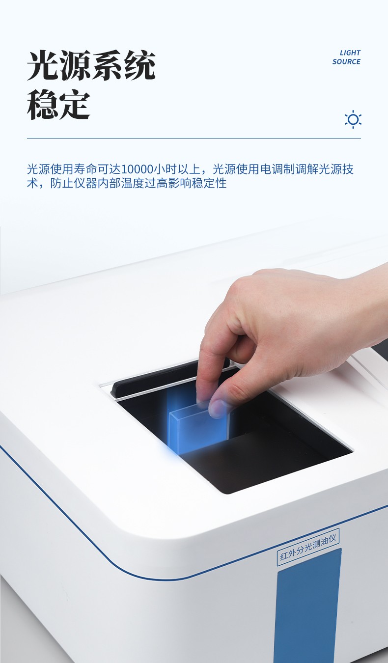 5.光源使用壽命可達10000小時以上,光源使用電調制調解光源技術,防止儀器內部溫度過高影響穩定性;